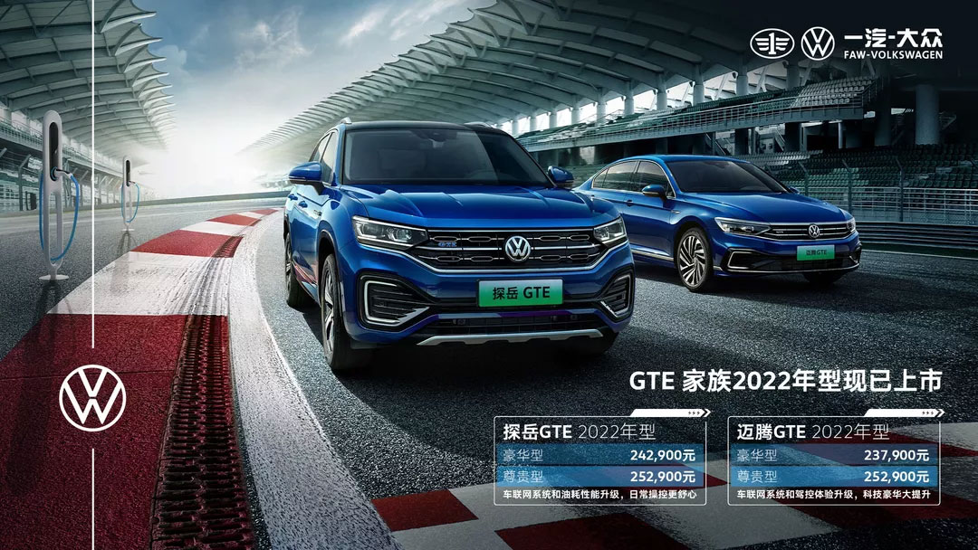 一汽-大眾GTE家族2022年型正式上市,增配車聯(lián)網(wǎng)及多項裝備