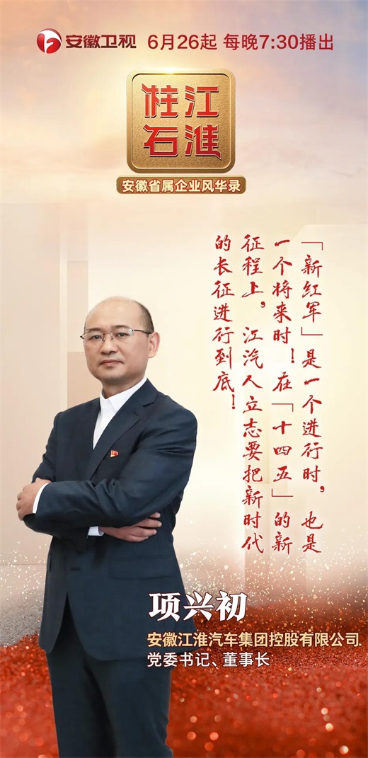6月28日,在安徽省國資委、安徽衛(wèi)視聯(lián)合安徽省屬29家企業(yè)推出的29集微紀(jì)錄片《江淮柱石》節(jié)目中,江汽集團黨委書記、董事長項興初帶來了一本《JAC憲章》,深情講述其中蘊含的“新紅軍精神”,激情展現(xiàn)“十四五”的新征程上,江汽人立志要把新時代的長征進行到底的豪情!