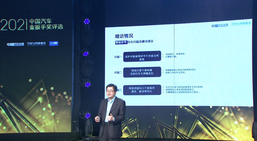 2021年4月起,主辦方策劃并開展2021金扳手服務暗訪行動,對20多家候選品牌4S店的售后服務進行實地調查暗訪。主辦方全新制定了GES-150金扳手服務評價標準,包括三大階段、27個考察點,對各品牌4S店售后服務的專業(yè)性、規(guī)范性及人性化等方面進行綜合評價,并在典禮現(xiàn)場發(fā)布《2021金扳手服務暗訪總結報告》,助力車企發(fā)揮品牌服務的優(yōu)勢,不斷提升用戶滿意度,推動全行業(yè)服務品質持續(xù)升級。