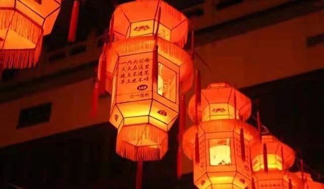 而月圓夜在人潮簇?fù)淼慕诸^掛上一個個寫滿謎語的大紅燈籠,你來我往之間,好一片歡樂景象!