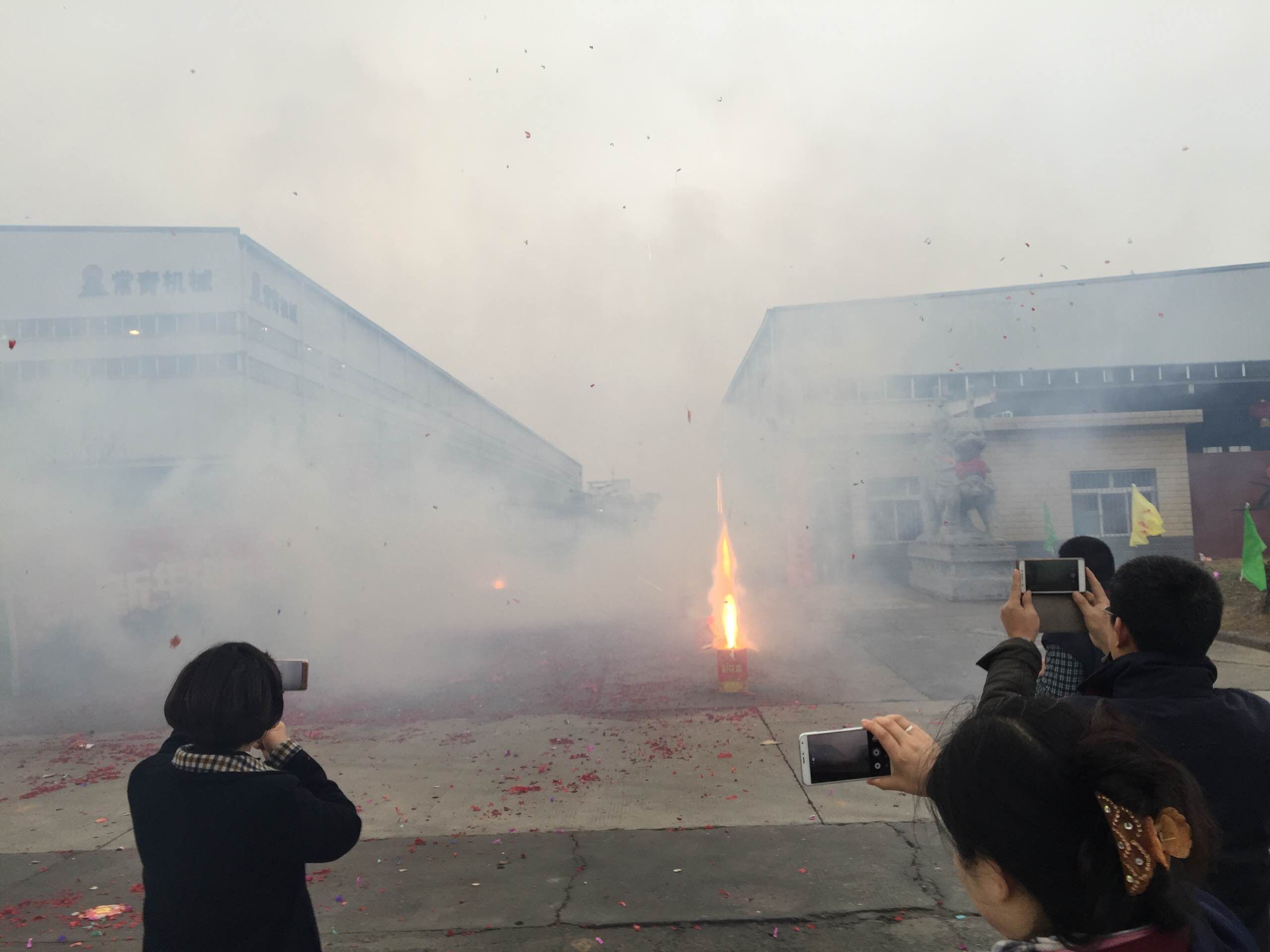 4、8點58分,在這千鈞一發(fā)時刻,各分廠同時點燃鞭炮與煙花,一時間燃放的鞭炮猶如天女散花,
