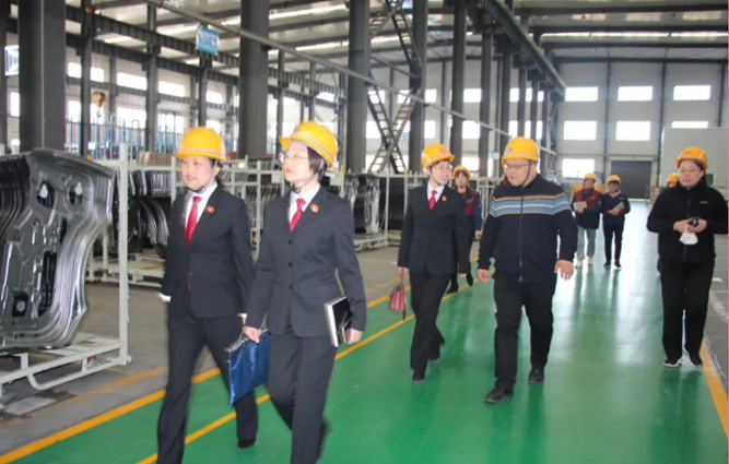 肥西縣人民法院領(lǐng)導(dǎo)一行人先后來(lái)到實(shí)驗(yàn)室、沖壓車間、焊裝車間機(jī)器人自動(dòng)化區(qū)域進(jìn)行實(shí)地參觀考察。執(zhí)行總經(jīng)理倪勤梅對(duì)我司的生產(chǎn)模式、運(yùn)行管理、技術(shù)改革等情況進(jìn)行了全方位的介紹和講解。